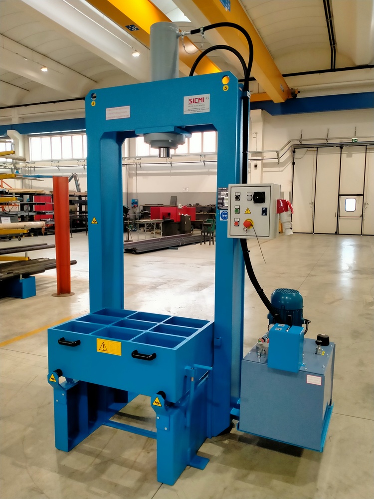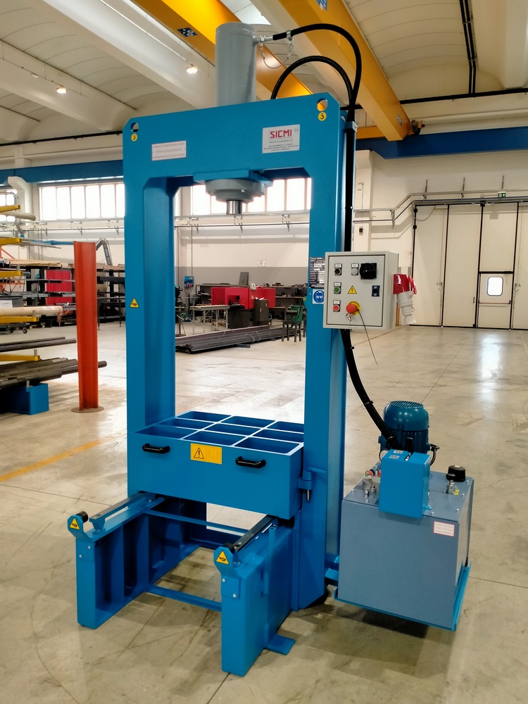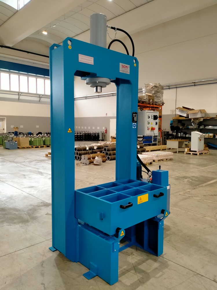 La pressa è stata verniciata di blu su specifica richiesta del cliente.