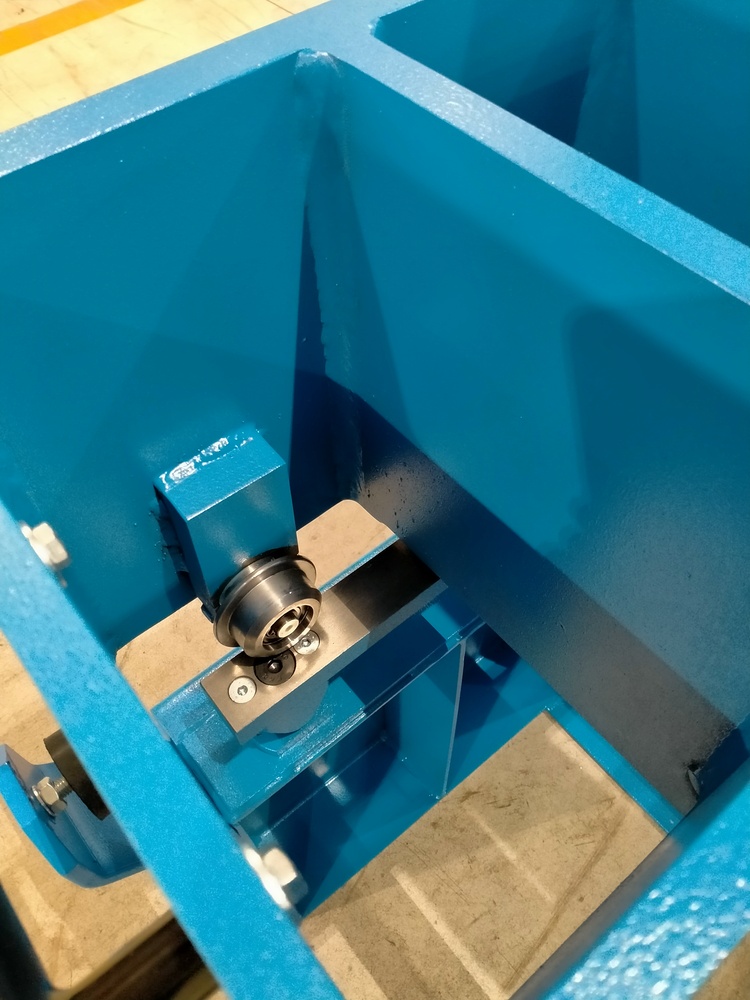 Il banco di appoggio misura 870 x 600mm e scorre lungo delle guide. Questa funzione è molto utile per potere caricare con l’utilizzo della gru dei materiali ingombranti e pesanti, come ad esempio dei motori e poi di potere fare scorrere il tavolo sotto al cilindro per svolgere i lavori di pressatura.