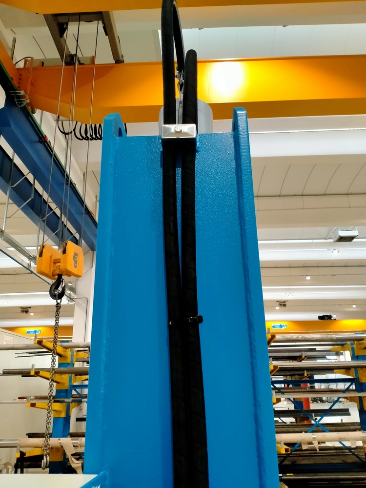 Il cilindro idraulico ha una corsa di 500mm e una distanza massima tra il pistone e il tavolo di 1100mm, così come richiesto dal cliente.