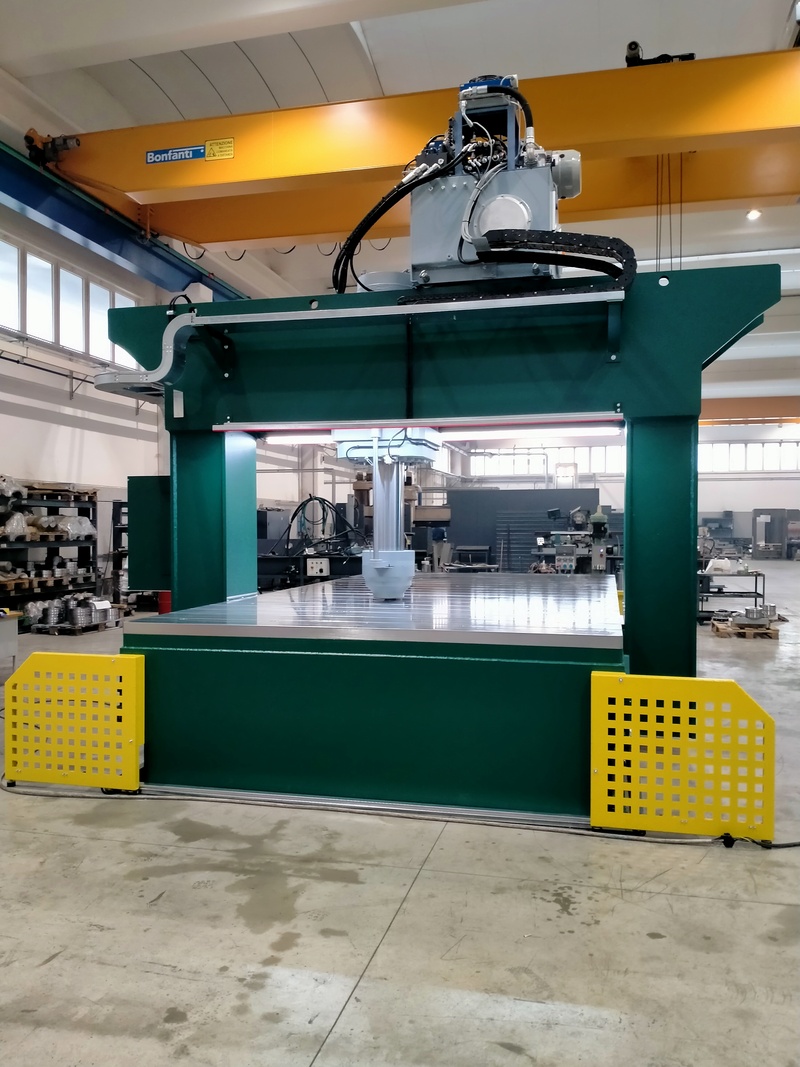 Questa pressa elettroidraulica raddrizzatrice con portale scorrevole sviluppa una potenza di 400 tonnellate e ha una distanza tra lo stelo e il banco di lavoro di 1000mm.