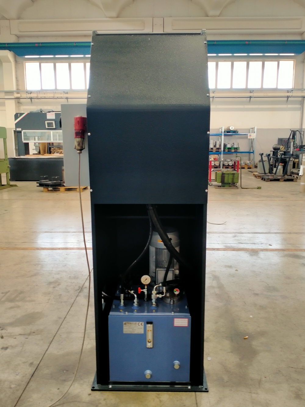In piena conformità con le normative vigenti, la macchina è dotata di certificazione CE e di un sistema anti-rotazione del cilindro. La versione fornita è quella semi-automatica, che permette all’operatore di regolare la corsa del pistone e di gestire i movimenti tramite una pratica combinazione di leva e pulsante.