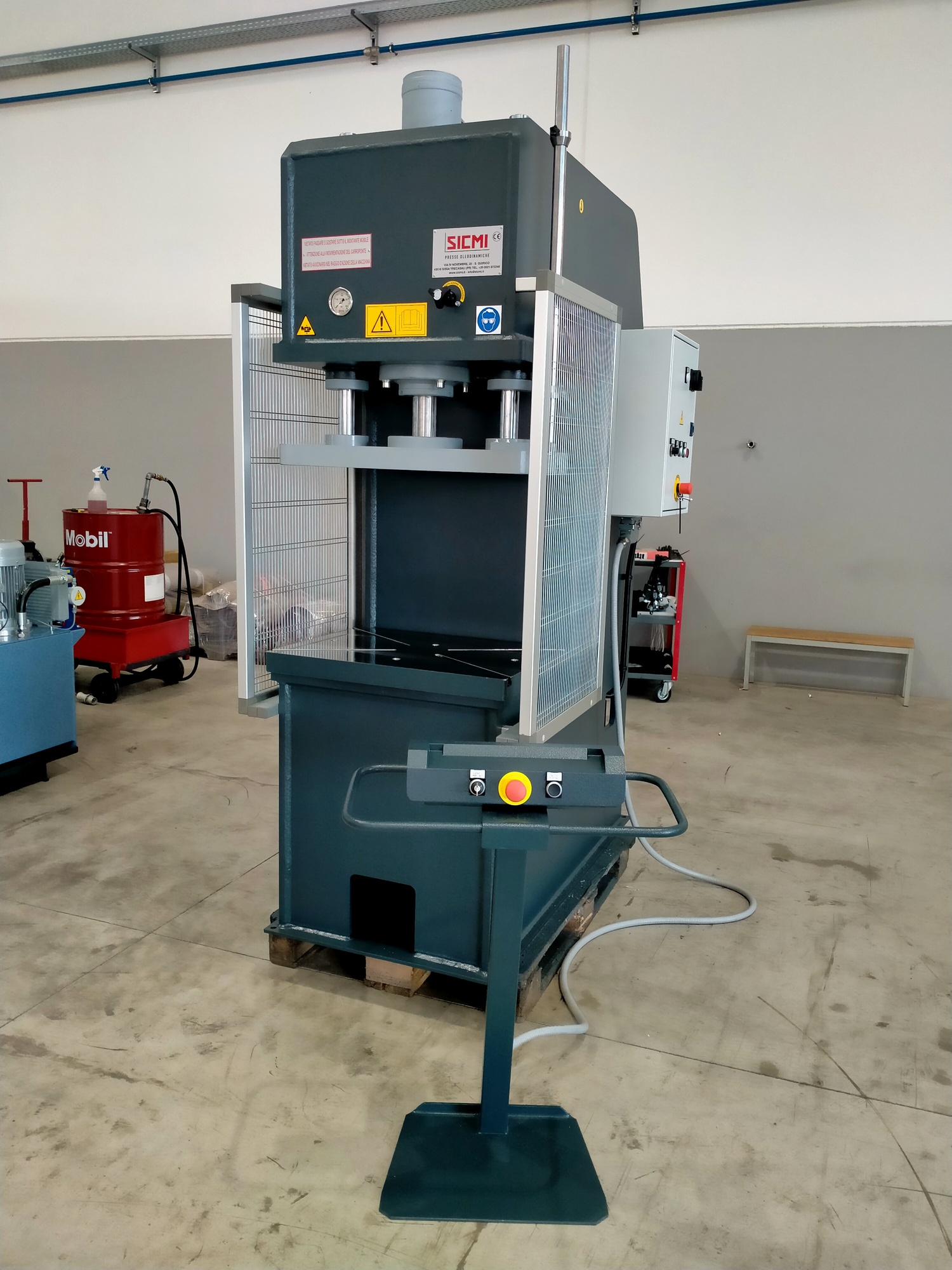 La pressa idraulica a colonna singola PCL viene fornita nei modelli a partire da 40 ton fino a 300 ton ed è disponibile sia nella versione semi-automatica, che con funzionamento automatico.