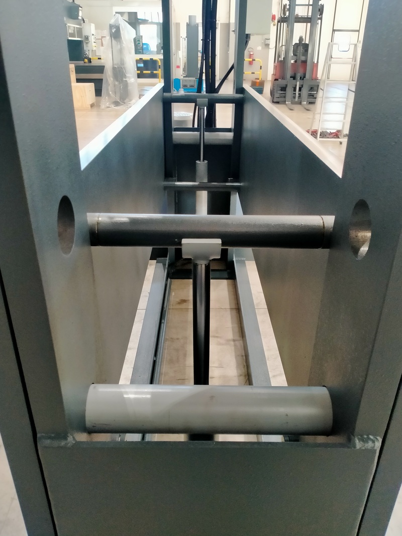 Per quanto riguarda il cilindro idraulico, il cliente può scegliere tra un modello di pressa idraulica PFF con cilindro fisso, oppure può optare per la versione con cilindro mobile con spostamento trasversale. Tale funzione è a comando manuale tramite volantino nei modelli fino a 100 ton e a movimento oleodinamico dalle 150 tonnellate in su.