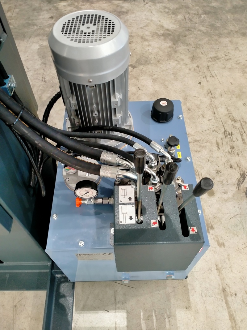 La caratteristica principale della pressa oleodinamica PFF che la contraddistingue rispetto agli altri modelli è il sollevamento idraulico del pianale di lavoro. Quest’ultimo viene bloccato con l’utilizzo di tubi in acciaio così da eliminare eventuali movimenti indesiderati.