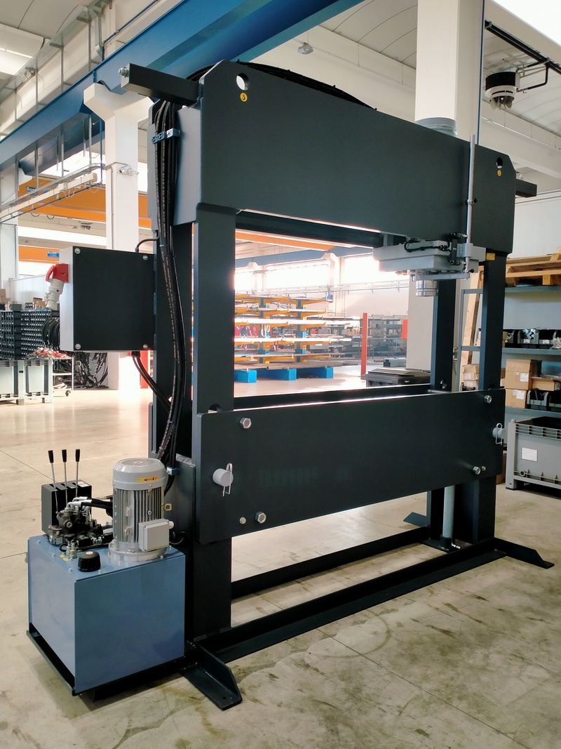La pressa idraulica con pianale motorizzato, modello PFF 150 MD, è la macchina ideale per svolgere operazioni di raddrizzatura, di piegatura della lamiera o per eseguire varie attività all’interno di un’officina meccanica.
