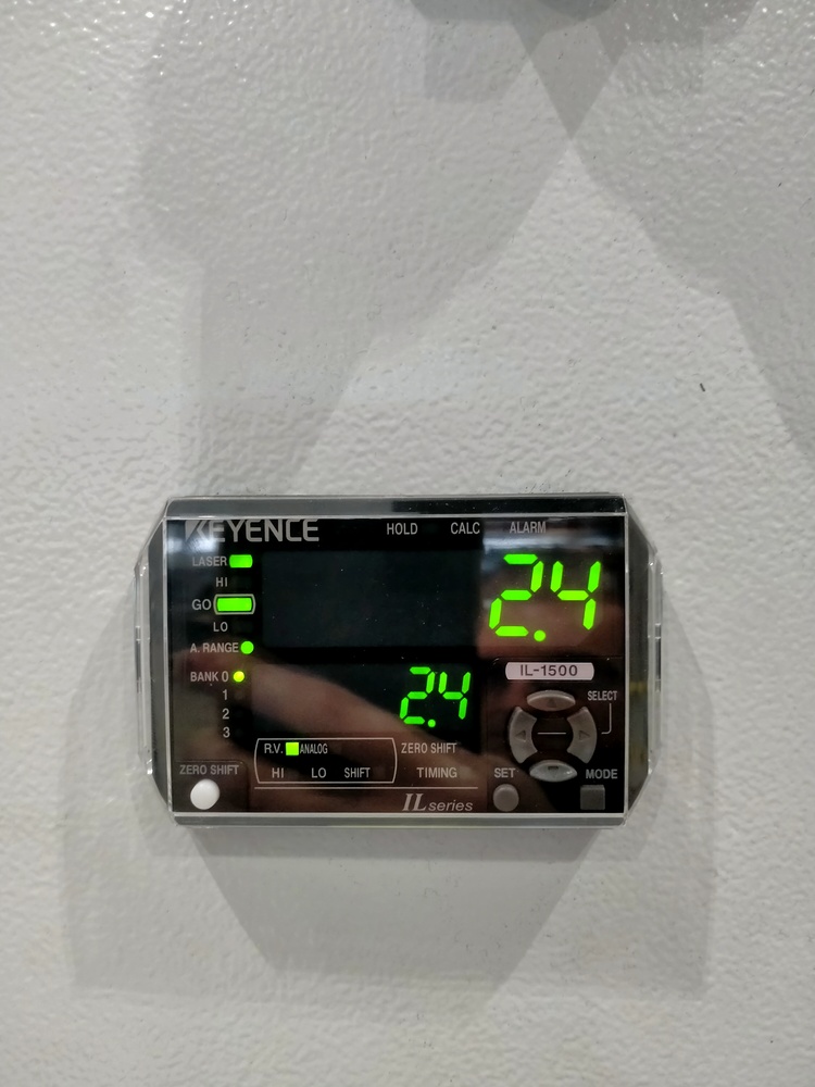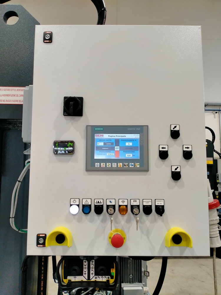 La pressa è fornita di un dispositivo laser montato vicino al cilindro idraulico, il quale misura in tempo reale la distanza che lo separa dalla superficie di lavoro e comunica quindi all’operatore se la lamiera da raddrizzare è dritta oppure se ha bisogno di ulteriori pressature.