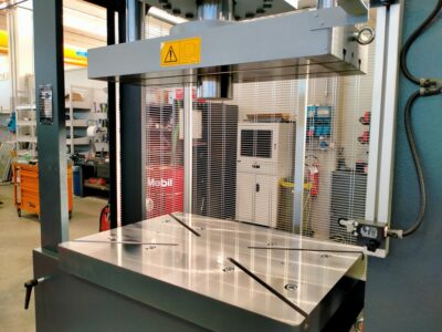 Questa macchina non è solo potente, ma estremamente precisa. La struttura a due colonne in acciaio fresato e saldato garantisce una stabilità strutturale superiore, necessaria per assorbire le elevate pressioni di esercizio senza flessioni.