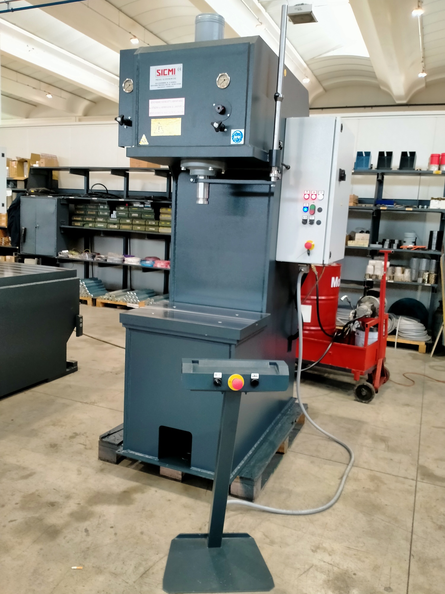 Questa pressa verrà utilizzata per la raddrizzatura della lamiera, dei metalli in generale e grazie alla sua ampia apertura frontale permetterà di collocare materiali ingombranti e di caricarli sulla tavola anche di lato, rendendola quindi adatta a lavorazioni varie all’interno dello stabilimento del nostro cliente.