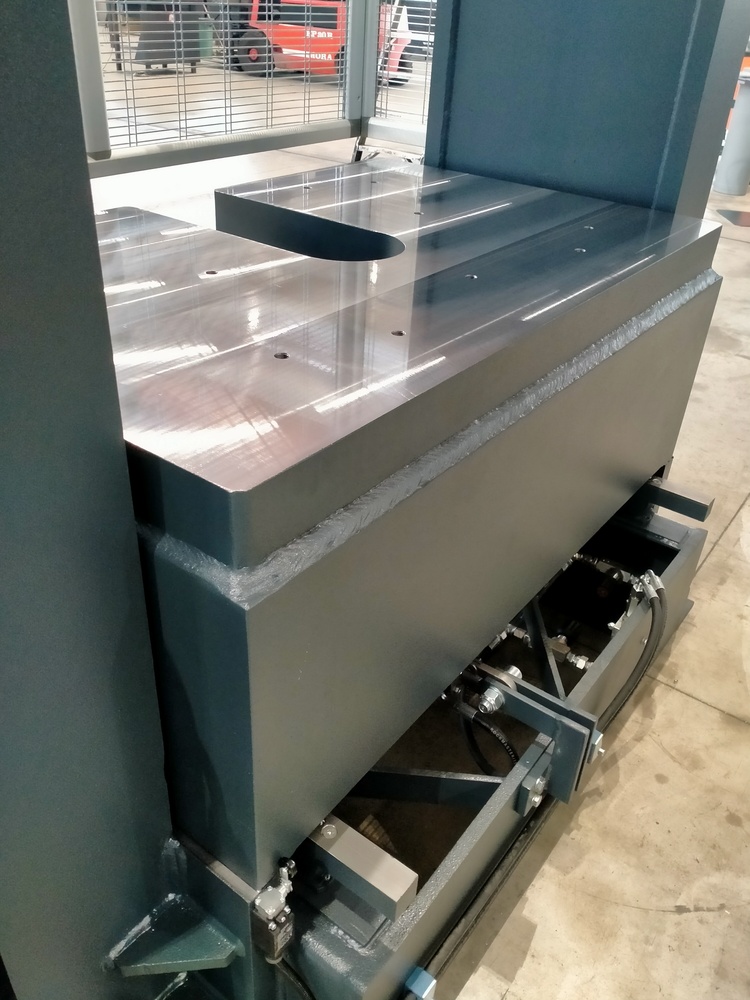 Abbiamo appena finito di realizzare una pressa oleodinamica con tavola mobile che verrà utilizzata all’interno di uno stabilimento che produce compressori industriali.