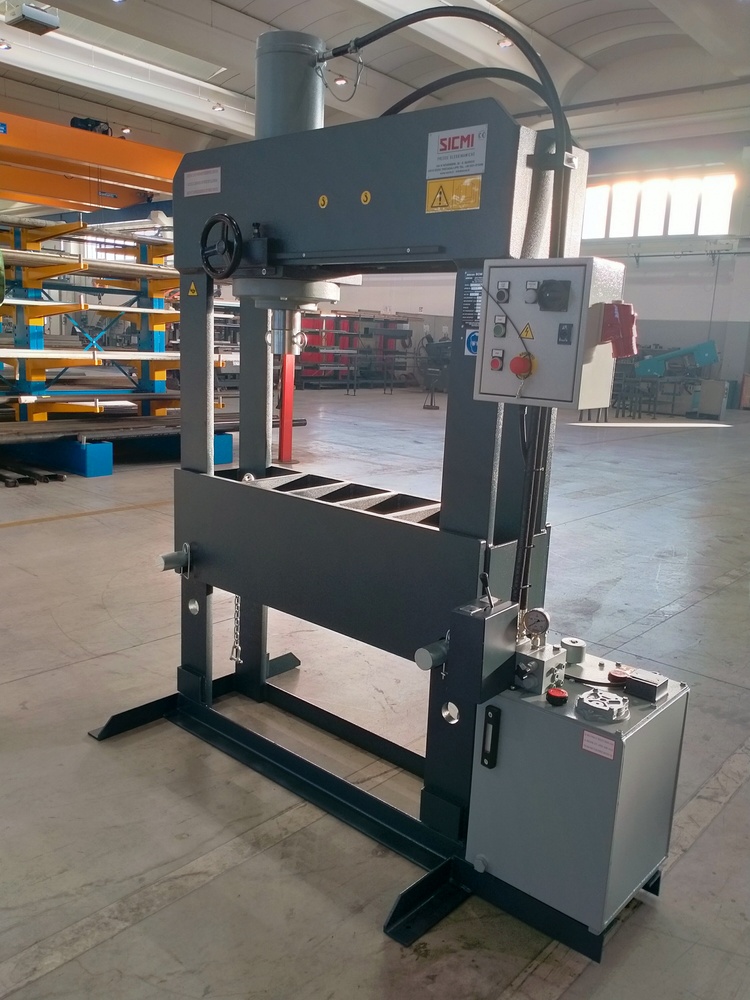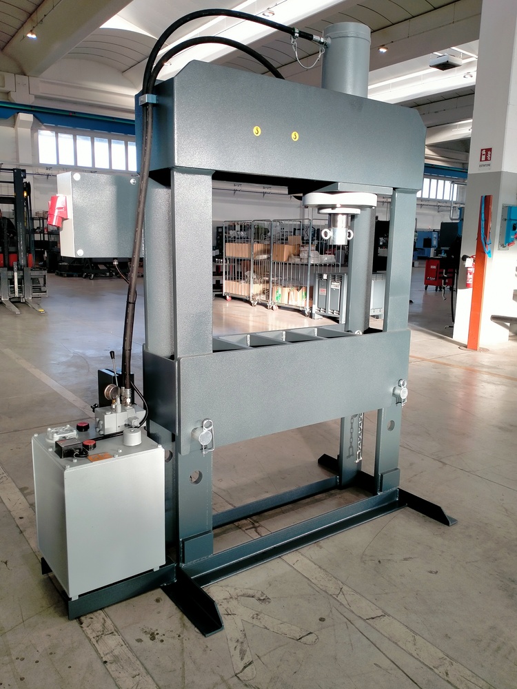 Abbiamo appena ultimato la produzione di una pressa oleodinamica da officina con cilindro mobile, modello PSS 100 M.