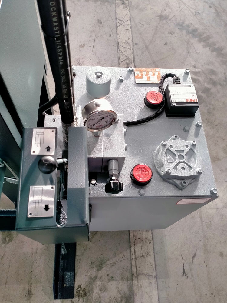 L’azionamento della pressa avviene tramite l’utilizzo contemporaneo della leva e del pulsante, così come previsto dalle vigenti normative in termini di sicurezza.