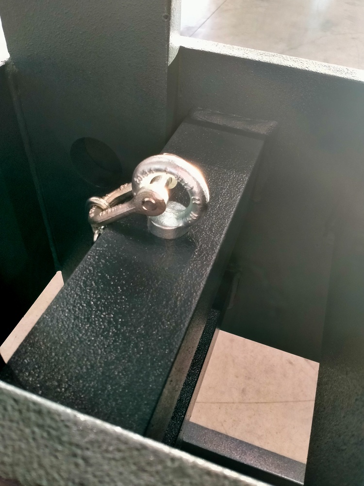 Il pianale di lavoro è regolabile in altezza e la sua movimentazione avviene collegando i golfari al cilindro con due catene.
