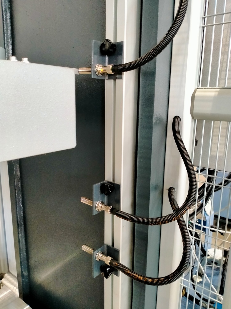 Visto che il materiale che il cliente vorrà lavorare ha la tendenza a comprimersi durante la lavorazione e a ridursi di spessore, sono stati installati due pressostati che monitorano la pressione minima e massima di lavorazione. Questo significa che quando la pressione cala fino ad un certo livello, il pressostato che monitora la pressione di minima, invia un impulso alla centralina idraulica, la quale immette nel circuito un certo quantitativo di olio fino a raggiungere la pressione massima preimpostata.