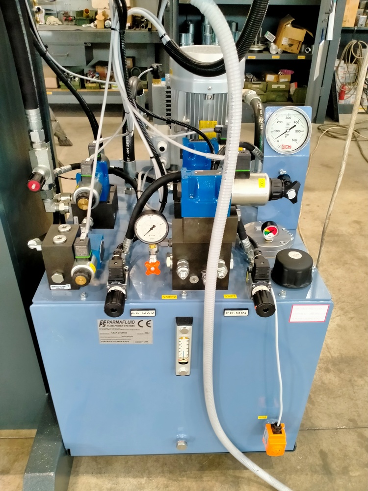 Dato che le presse verranno impiegate in lunghi cicli di produzione, la centralina idraulica è fornita di uno scambiatore di calore che evita il surriscaldamento del circuito idraulico.