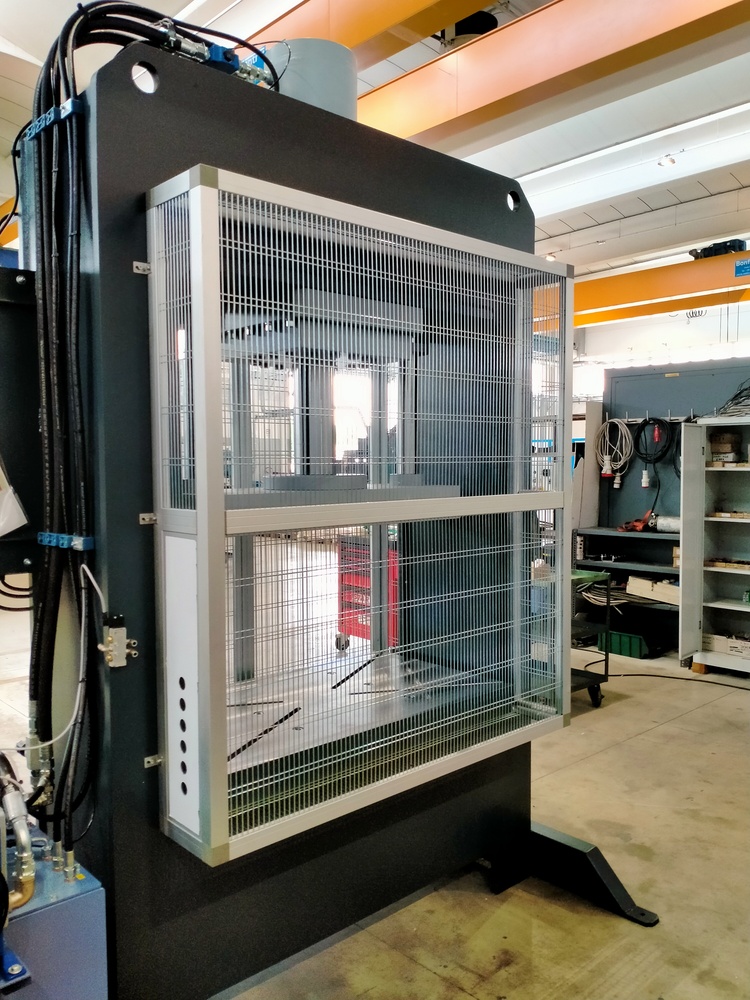 Queste presse idrauliche per sagomatura sono equipaggiate di reti posteriori fisse di protezione e di reti anteriori apribili, fornite di sensori di sicurezza.
