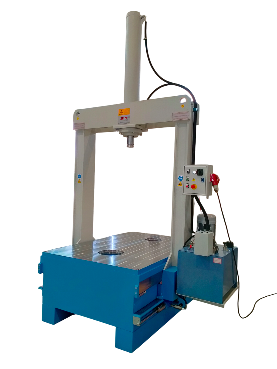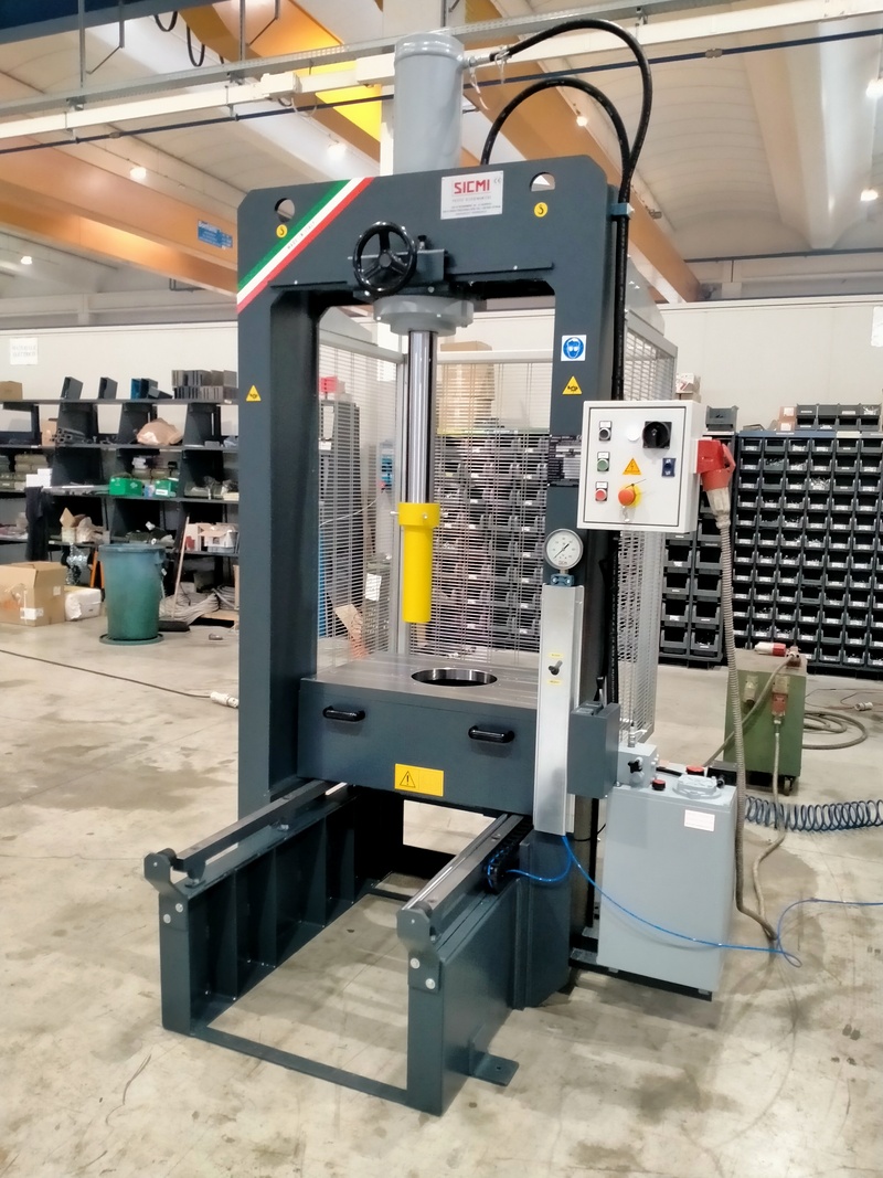 Questa pressa idraulica da officina con tavola scorrevole è stata realizzata per effettuare operazioni di calettatura e di rimozione di perni.