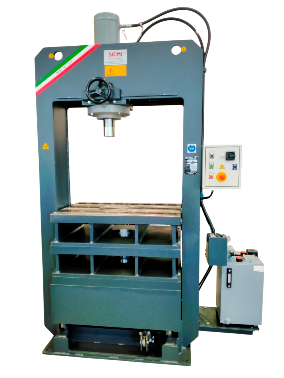 La pressa idraulica PBM 100 A è dotata di un pianale mobile a spostamento orizzontale, il quale facilita il posizionamento del pezzo da lavorare.