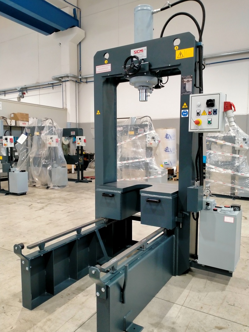 Pressa da officina per lo smontaggio dei rotori e per la raddrizzatura della lamiera.