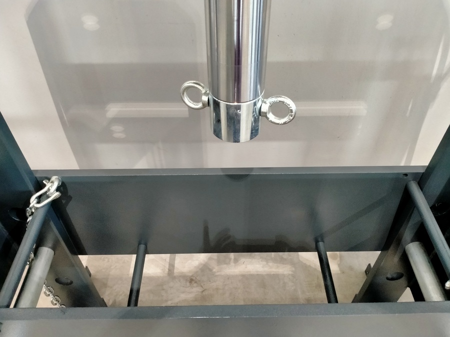 Il piano di lavoro della pressa idraulica per officina PSS è cavo e questo permette una lavorazione del materiale in altezza. Il piano di appoggio lavoro è disponibile come equipaggiamento opzionale.