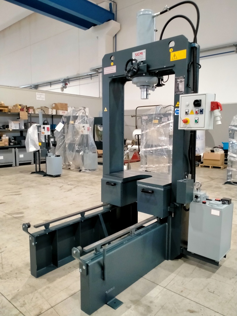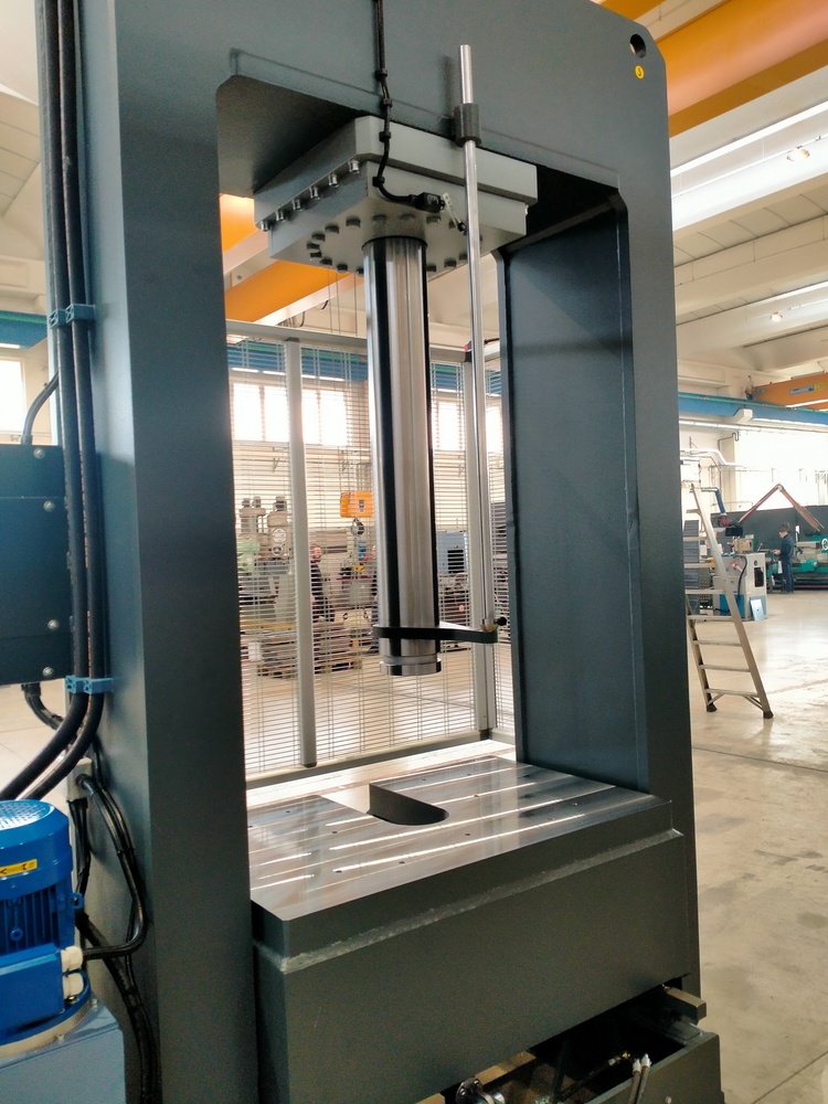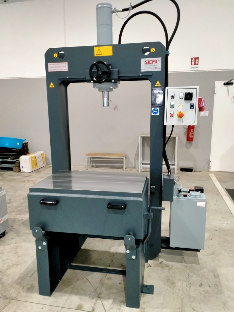 Pressa idraulica adatta alla raddrizzatura della lamiera, al montaggio e allo smontaggio dei motori elettrici e più in generale a qualsiasi operazione di assemblaggio.