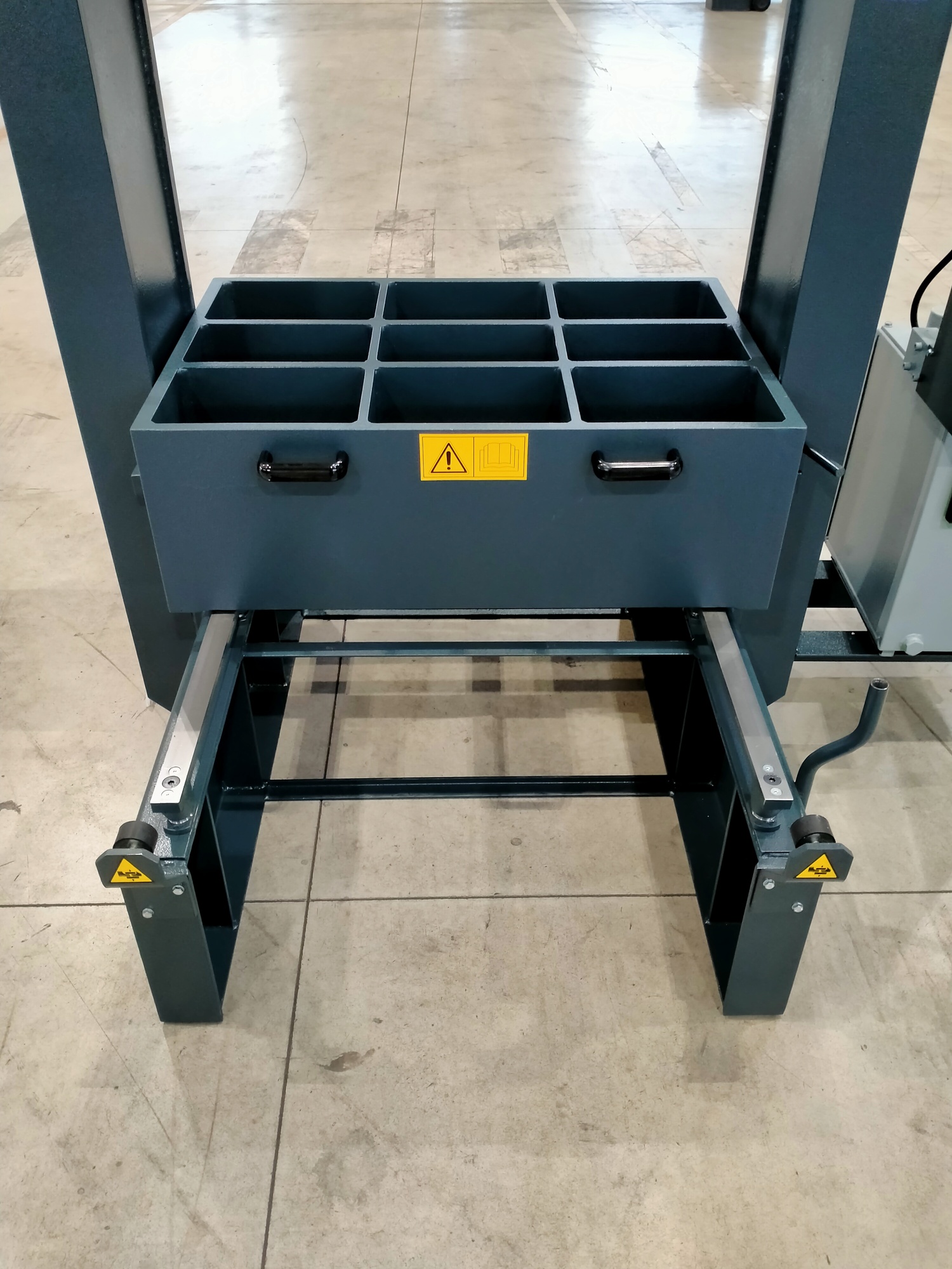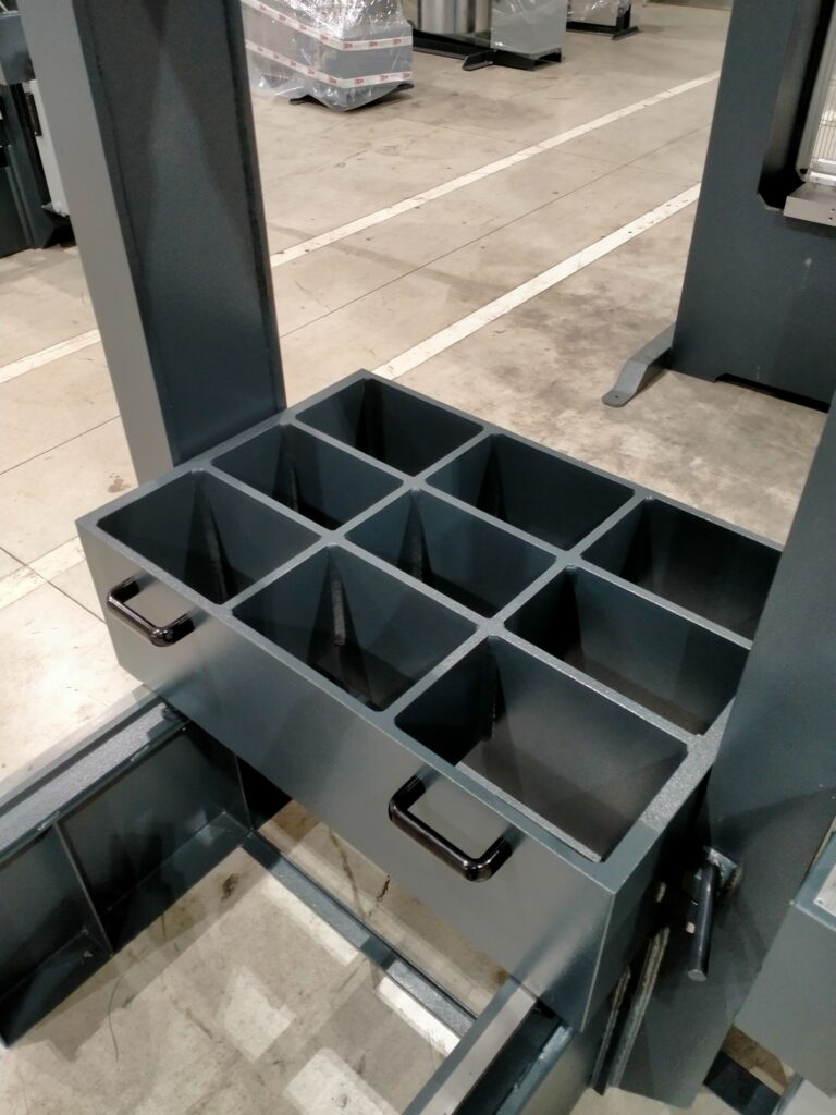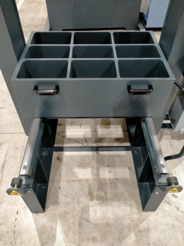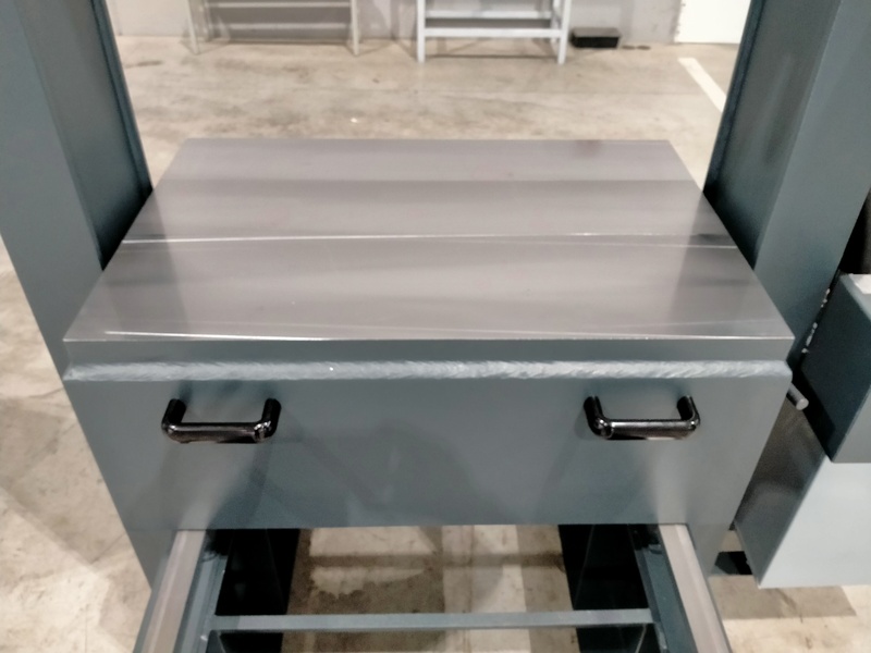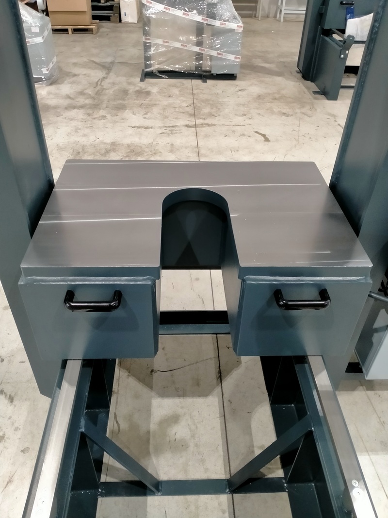 La pressa da officina meccanica PBM è dotata di un pianale scorrevole con funzionamento manuale, che facilita il carico e lo scarico dei pezzi da lavorare.