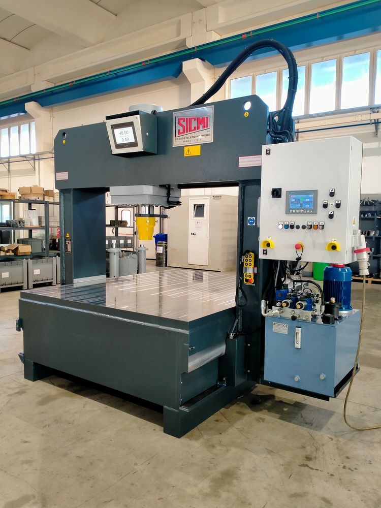 La corsa del cilindro idraulico è di 500mm e la pressa oleodinamica PMM è disponibile nei modelli dalle 150 alle 600 tonnellate.