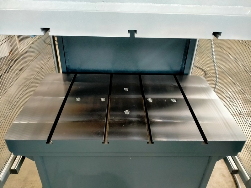 Entrambe le tavole sono fornite di scanalature a forma di T per un rapido ed agevole fissaggio degli stampi.