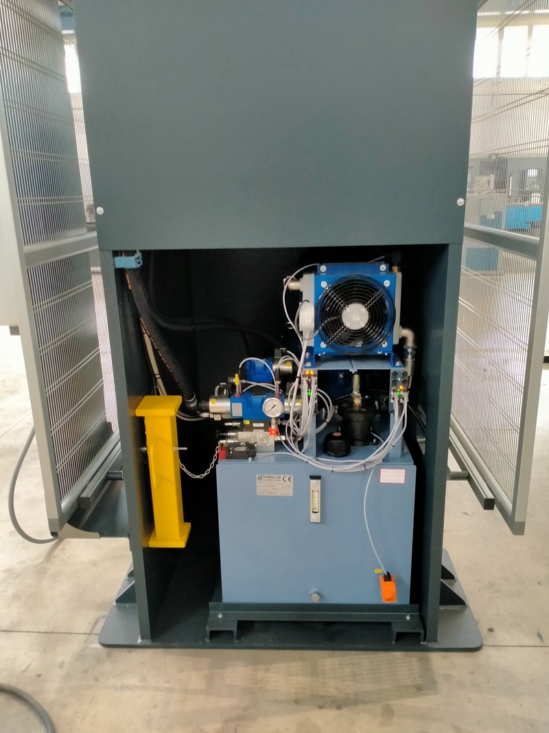 La pressa a collo di cigno è equipaggiata con centralina oleodinamica con elettrovalvole monitorate Rexroth.